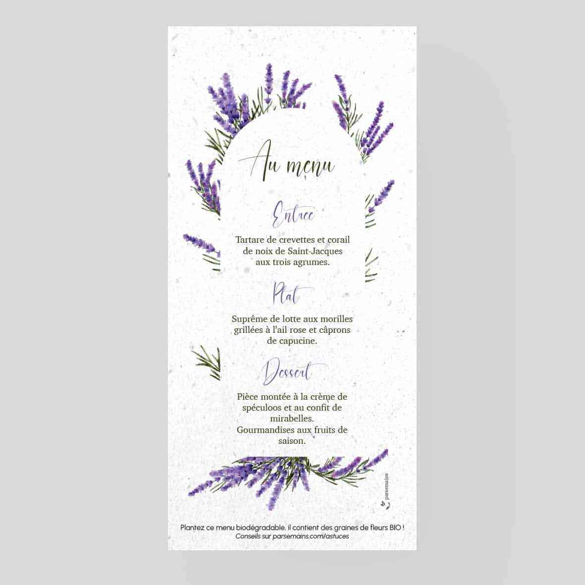 Menu mariage à semer – Lavande Bohème