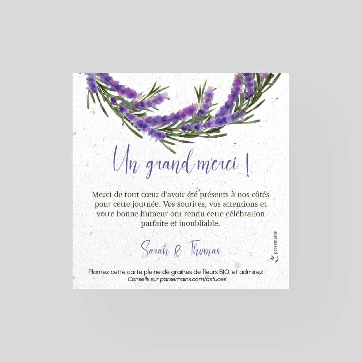 Carte de remerciement mariage à semer - Lavande bohème - situation